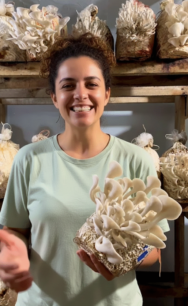 Ana foi nossa aluna, e hoje está muito feliz por ter alcançado seu objetivo após ter feito nosso Curso Cultivo de Cogumelo em Casa. Hoje ela tem seu uma exelente produção.